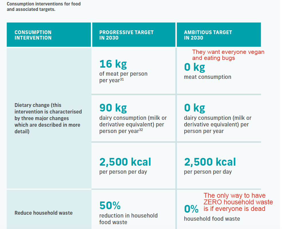 The globalist goals for reaching “sustainable climate change targets” requires that everyone is vegan, eating bugs, and—for the goal of ZERO household waste—dead.