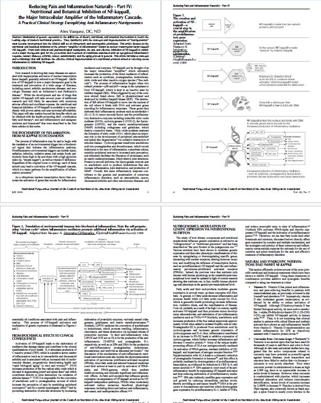 Vasquez A. Nutritional and Botanical Inhibition of NF-kappaB, the Major Intracellular Amplifier of the Inflammatory Cascade. A Practical Clinical Strategy Exemplifying Anti-Inflammatory Nutrigenomics. Nutritional Perspectives 2005