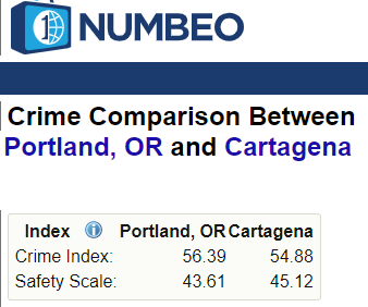 With the rise in crime in the United States, several major cities in the US are now more dangerous than those in Colombia; Portland Oregon now reports more crime and less safety than does Cartagena Colombia.