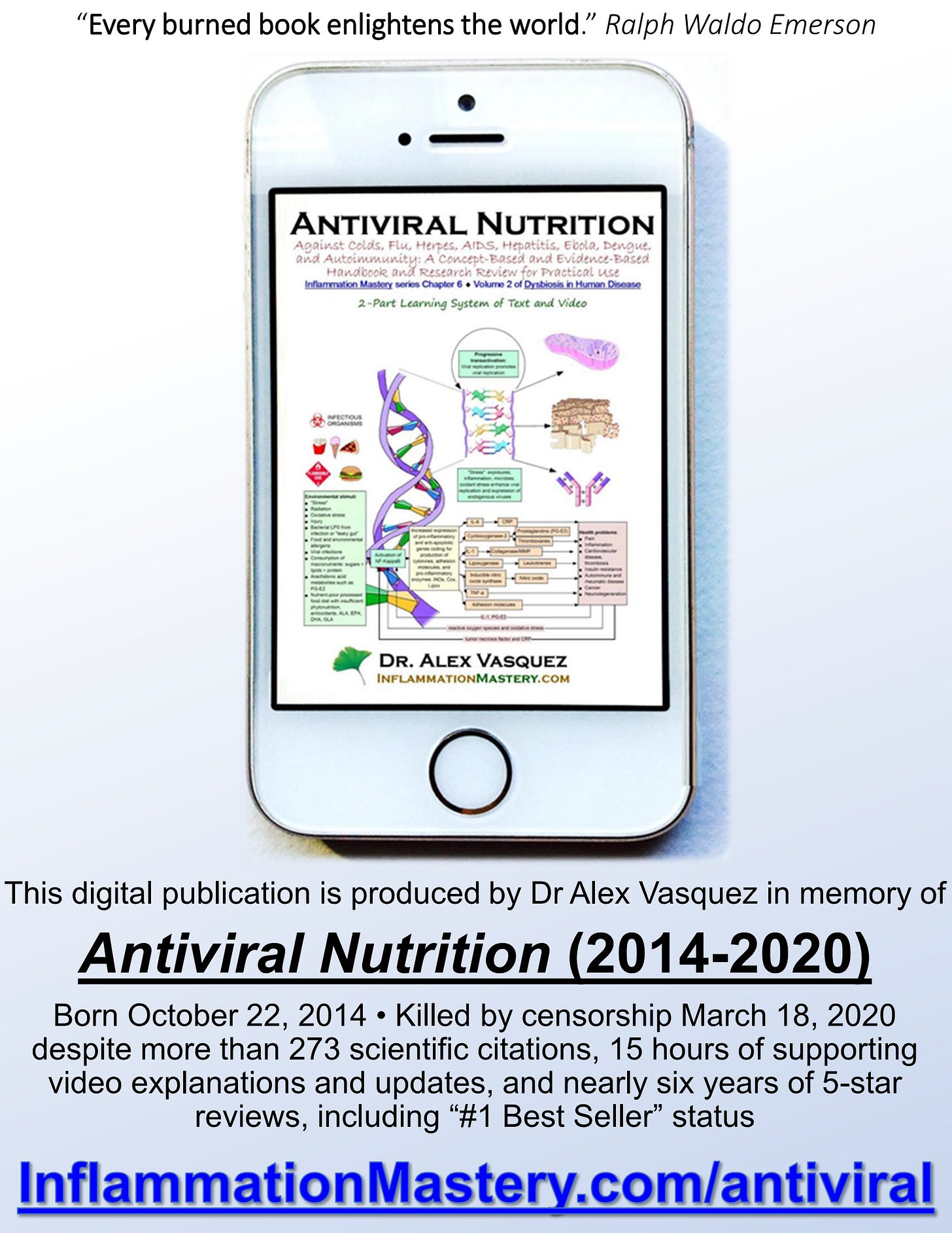 Amazon censored the publication and sale of my book Antiviral Nutrition which had been a no1 bestseller at times since its publication six years prior in 2014.