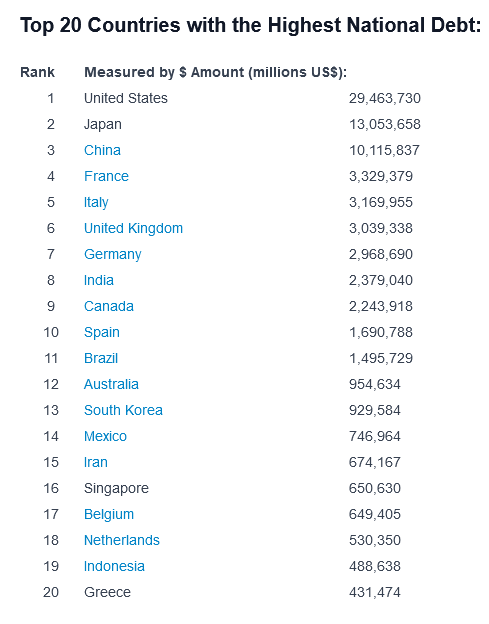 https://worldpopulationreview.com/country-rankings/countries-by-national-debt