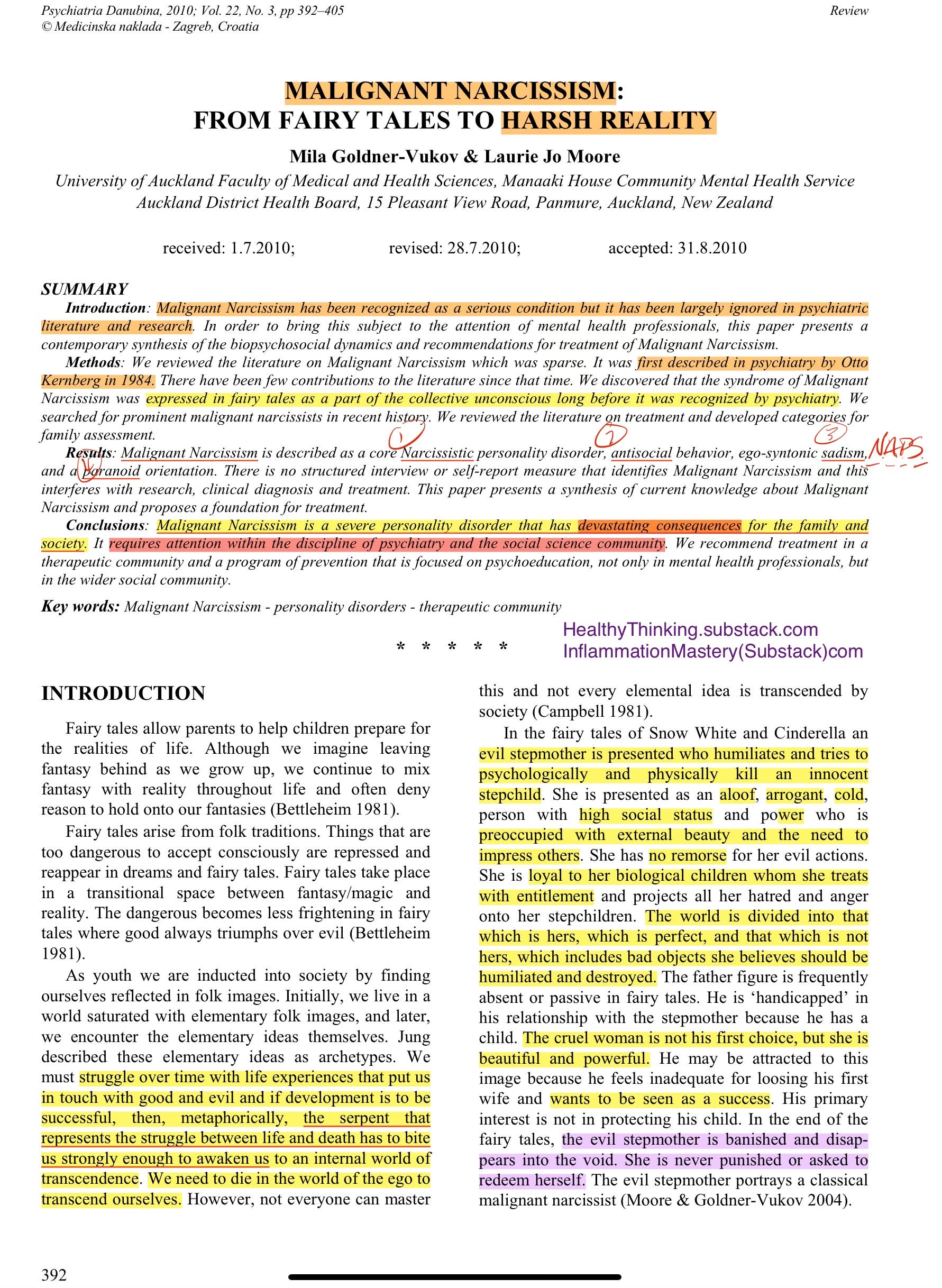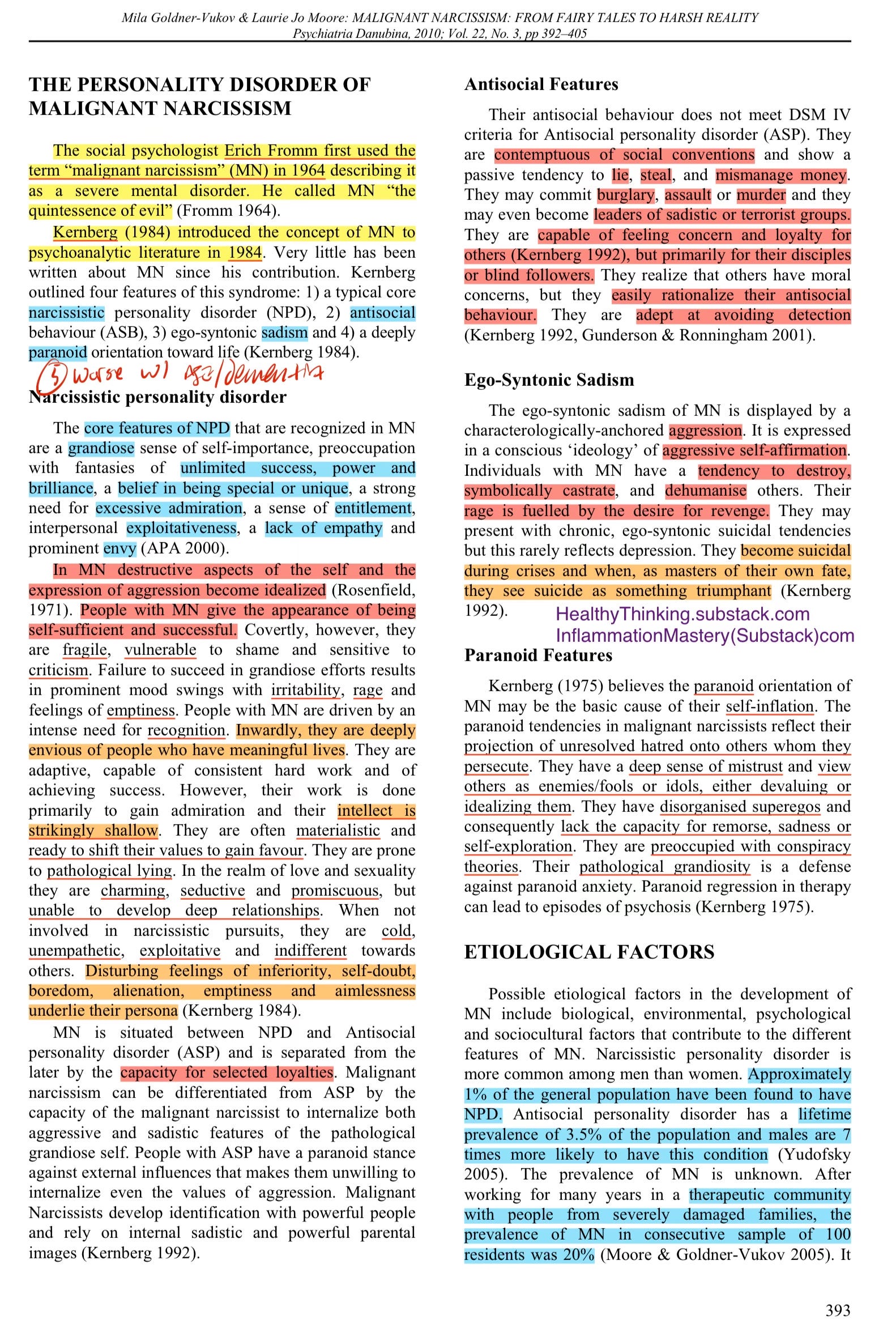 MALIGNANT NARCISSISM: definition and my new clinical-social acronym mnemonic N.A.P.S.