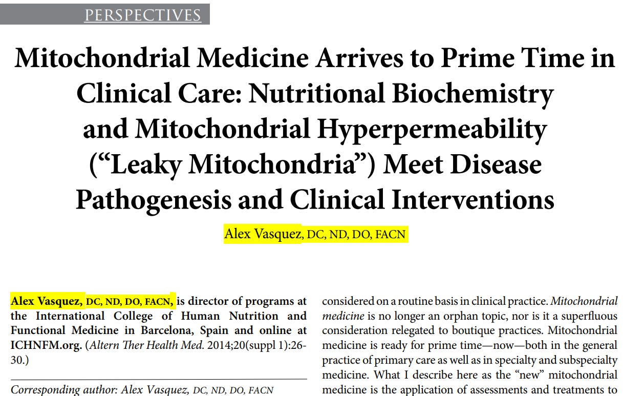 Vasquez A, Gustafson C. Interview—Mitochondrial dysfunction in the emerging "mitochondrial medicine". Integrative Medicine: A Clinician's Journal academia.edu/17119323 2013 Aug