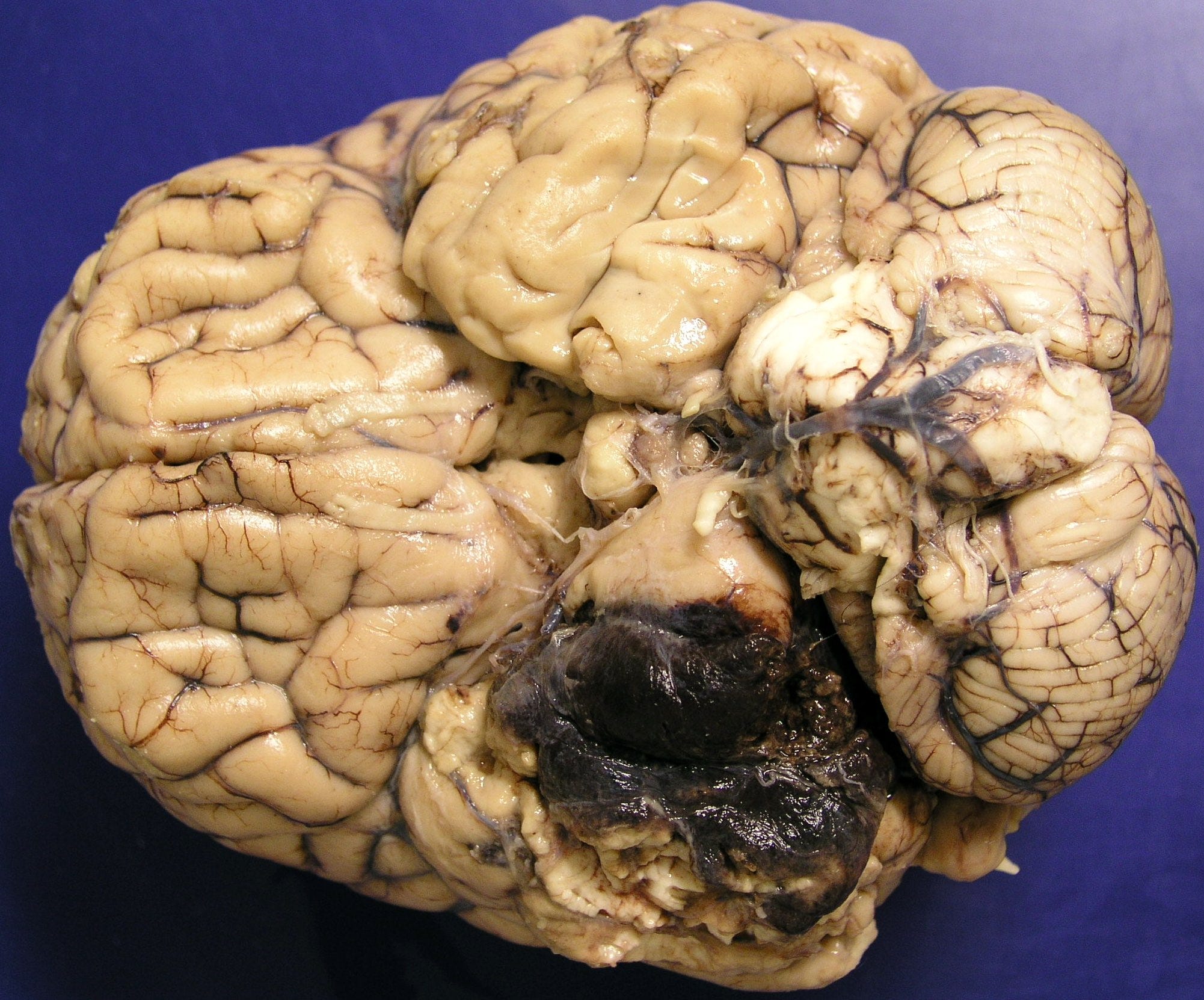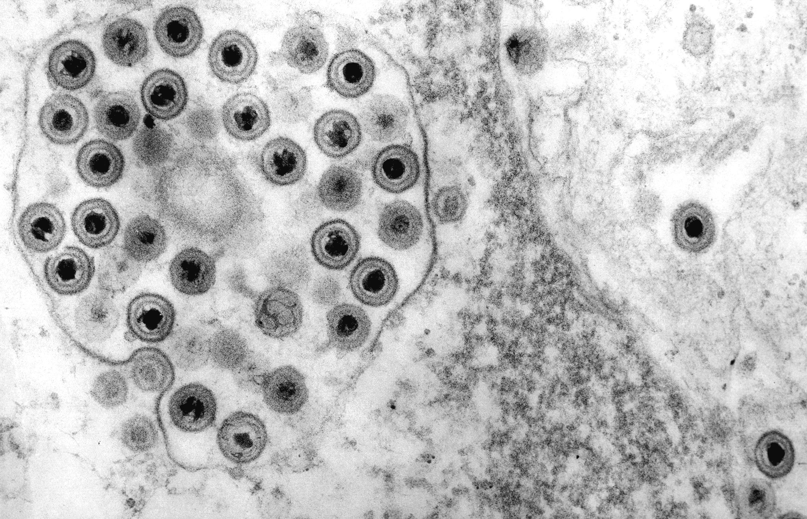Virus particles can be observed in infected tissue samples, such as post-mortem brain samples from animals and humans that have died from virus-mediated brain infections
